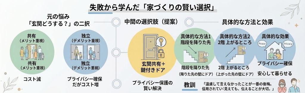 「玄関を共有するか別にするか」は大きな分かれ道です。